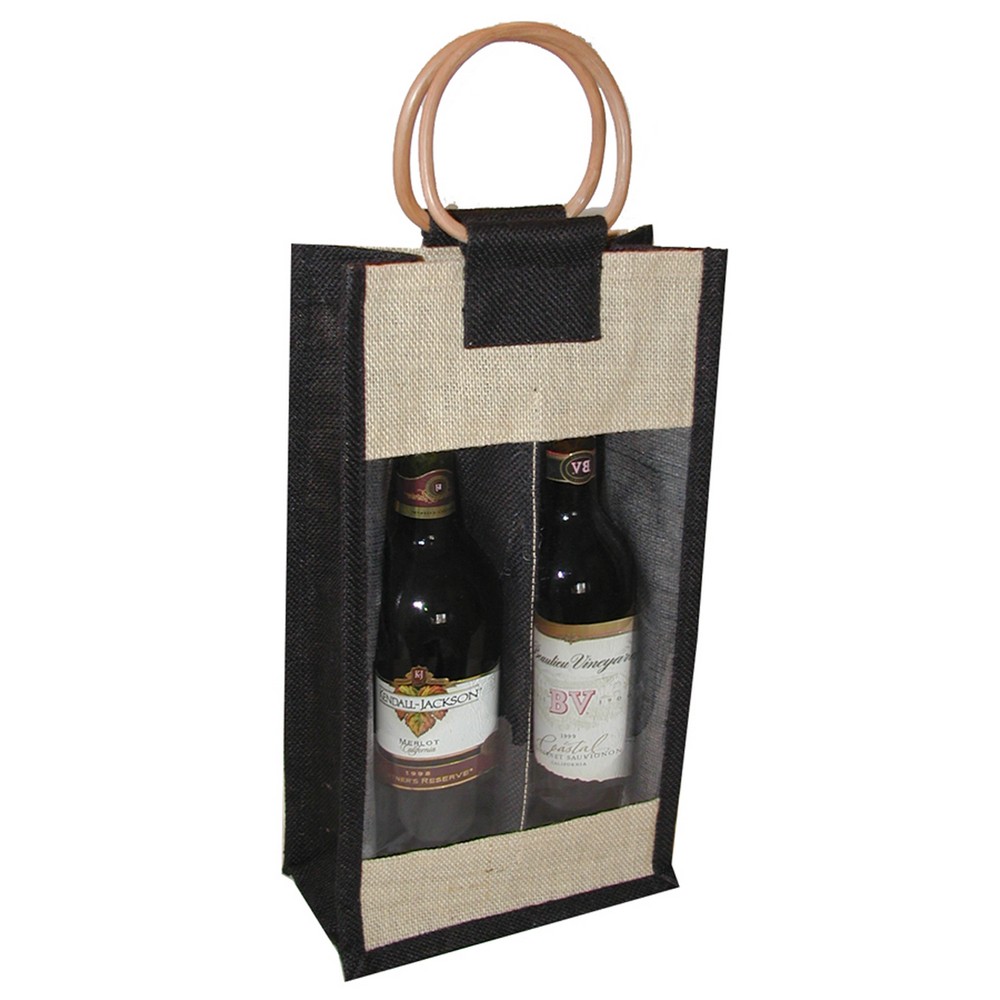 DescriptionReviews Description Black Jute Two Bottle Bag with windows. Reviews Be the first to review this item There are no reviews yet Product tags Black 652