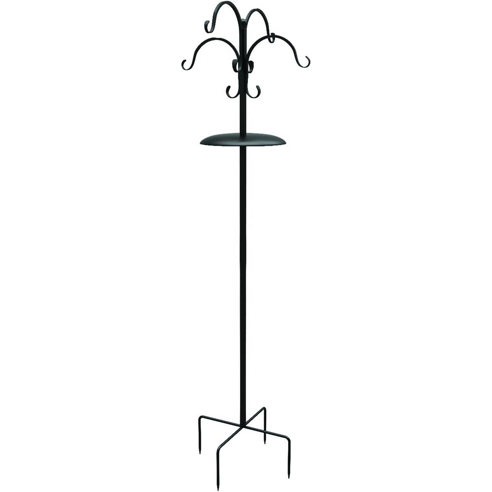90 inch H Deluxe Four Way Feeding Station Black. Pole diameter is 1 1/8 of an inch, is 90 inches total, but measures 73 inches above ground. Inserts into the ground with 4 outer prongs and a spear in the middle. Made of powder coated tubular steel. Includes Squirrel baffle and 5 point ground stabilization system.