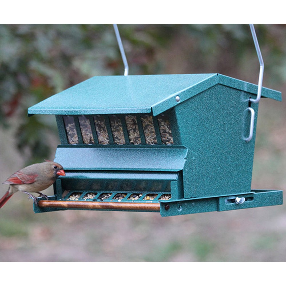 The Original Absolute Combo (Pole & Hanger). The Best Squirrel Proof Feeder for Close to Home Bird Viewing! Adjustable weight setting to select birds to feed. Single-sided feeding for placement near windows or walls. Large 2.5 gallon/ 15 lbs. seed capacity. Hang or pole mount. (hanger & pole included) Squirrel resistant construction. Adjustable weight settings. Seed saver baffle reduces wasted seed. East to open and fill with Top-Loc roof. Durable powder coated steel. The height of the pole when assembled is 48 inches. Ground socket is included. The pole has a 1 inch diameter and is made of steel and powder coated Black. Counter-balanced.