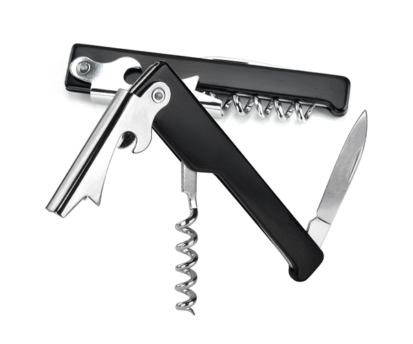 Simplicity is the ultimate sophistication, and our black single lever bottle opener totally embodies all the qualities of sophisticated simplicity! With its sleek and compact design it's practical and features a built in foil cutter, corkscrew, and bottle cap opener. There never was a more perfect wine accessory!