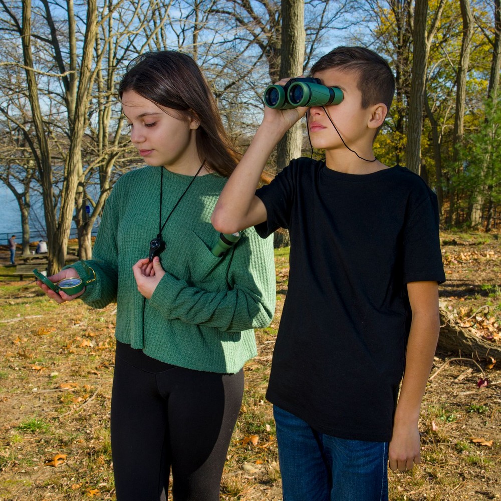 The AdventurePak from Carson Optical is everything you need for great adventures! Perfect for backpacking, biking, camping, and all forms of exploration. Includes a compact 30mm Kids Field Binocular, Flashlight, Lensatic Compass with true hand-bearing triangulation capabilities, and a combination signal whistle thermometer.