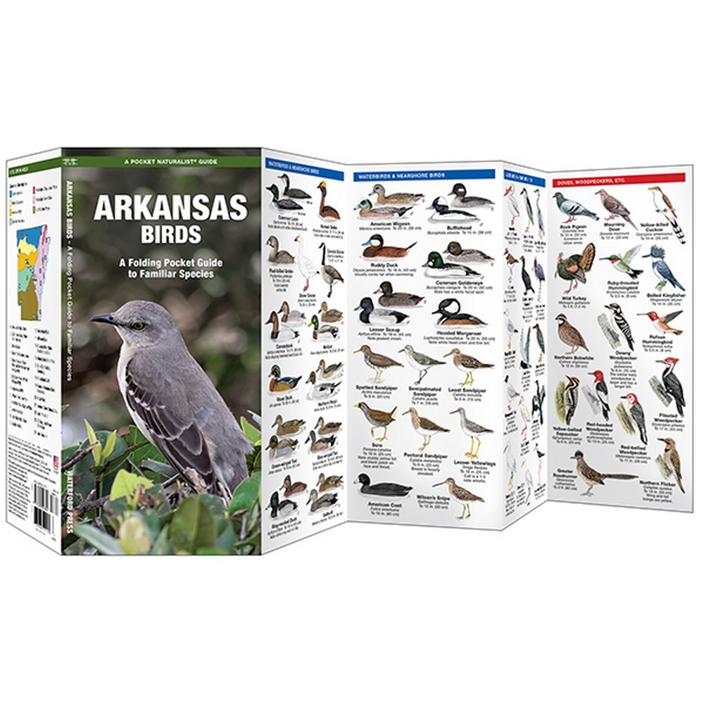 Arkansas Birds is a pocket reference guide printed on laminate material and folded for easy storage and retrieval. Color illustrations of common bird species and an inset map of popular Arkansas bird sanctuaries, helps to make this a must-have companion.
