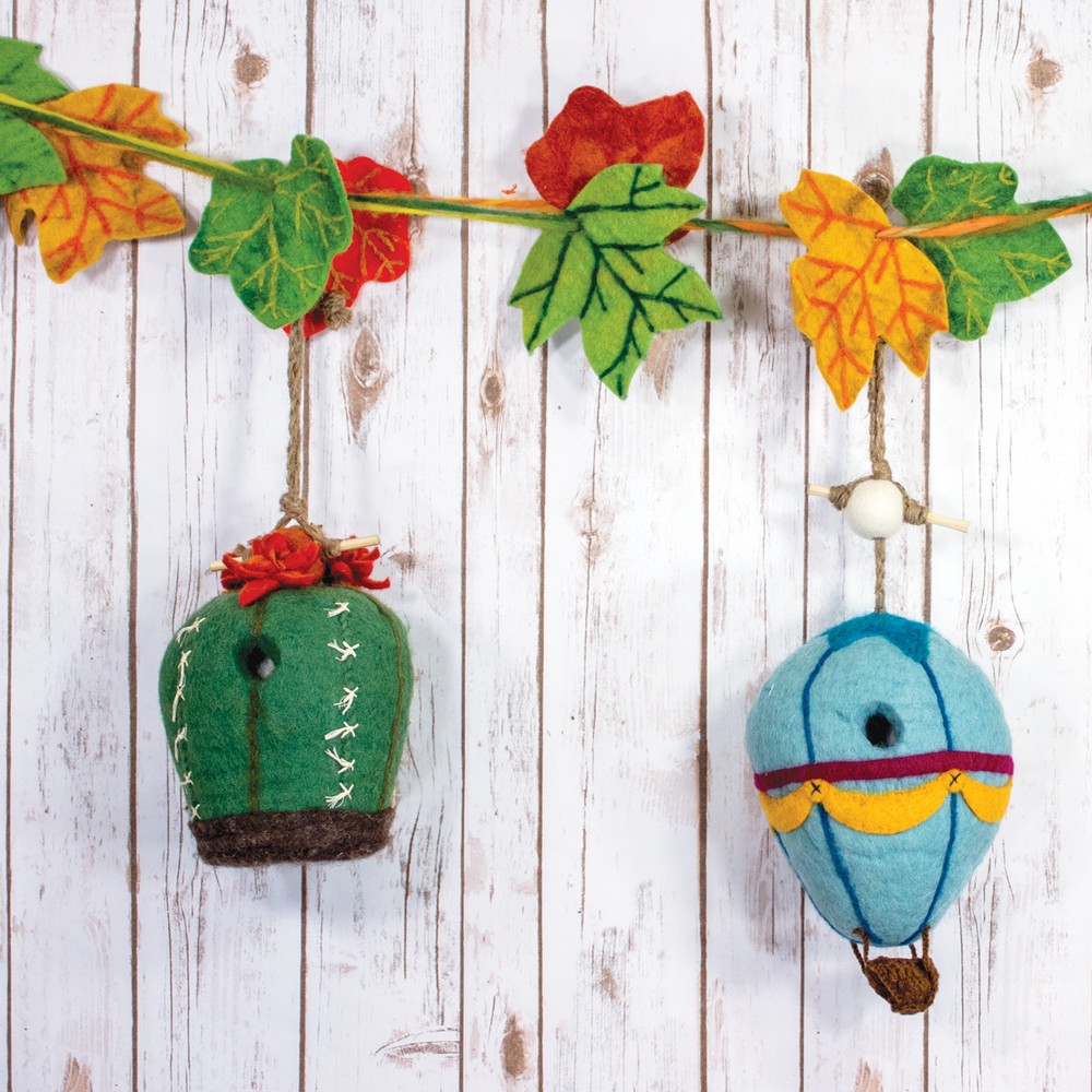 This hand felted wool Bird House is a super fun indoor decoration, and a functional outdoor Bird House! Hang in a protected outdoor space to where small birds like wren like to nest and it will also last forever! Made with sustainably harvested materials by skilled artisans working in a fair trade production center in Kathmandu, Nepal.