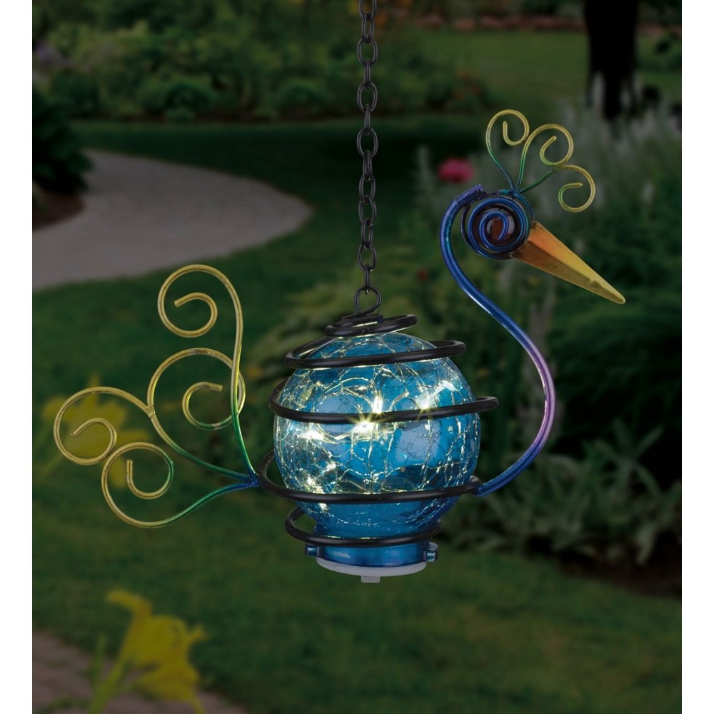 DescriptionReviews Description Features a glass crackle ball with a soft solar LED light string inside, and is adorned with a hand-painted metal head, wings and tail feathers Reviews Be the first to review this item There are no reviews yet