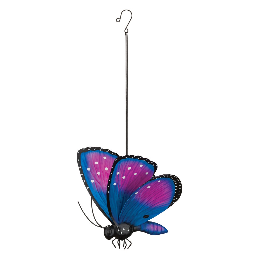 DescriptionReviews Description Graceful and beautiful butterflies bounce in the wind when hanging from trees or on the patio.Both sides of the wings have detailed hand painted designs depicting realistic actual butterflies. Crafted of metal. Measures 9.25 by 17 inches. Reviews Be the first to review this item There are no reviews yet Product tags Butterfly 842