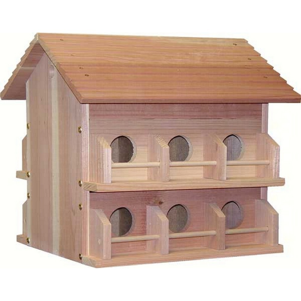 Cedar Martin House 12 Room. For a more traditional look, Heath manufactures cedar Purple Martin houses. Made of 3/4 thick lumber and mason ite room dividers and floors. Roof room dividers and floors lift out for easy cleaning. Mounting plate included for pole mount. Rooms measure 5 x 5 x 4. Entrance hole measures 2 1/4 inch.