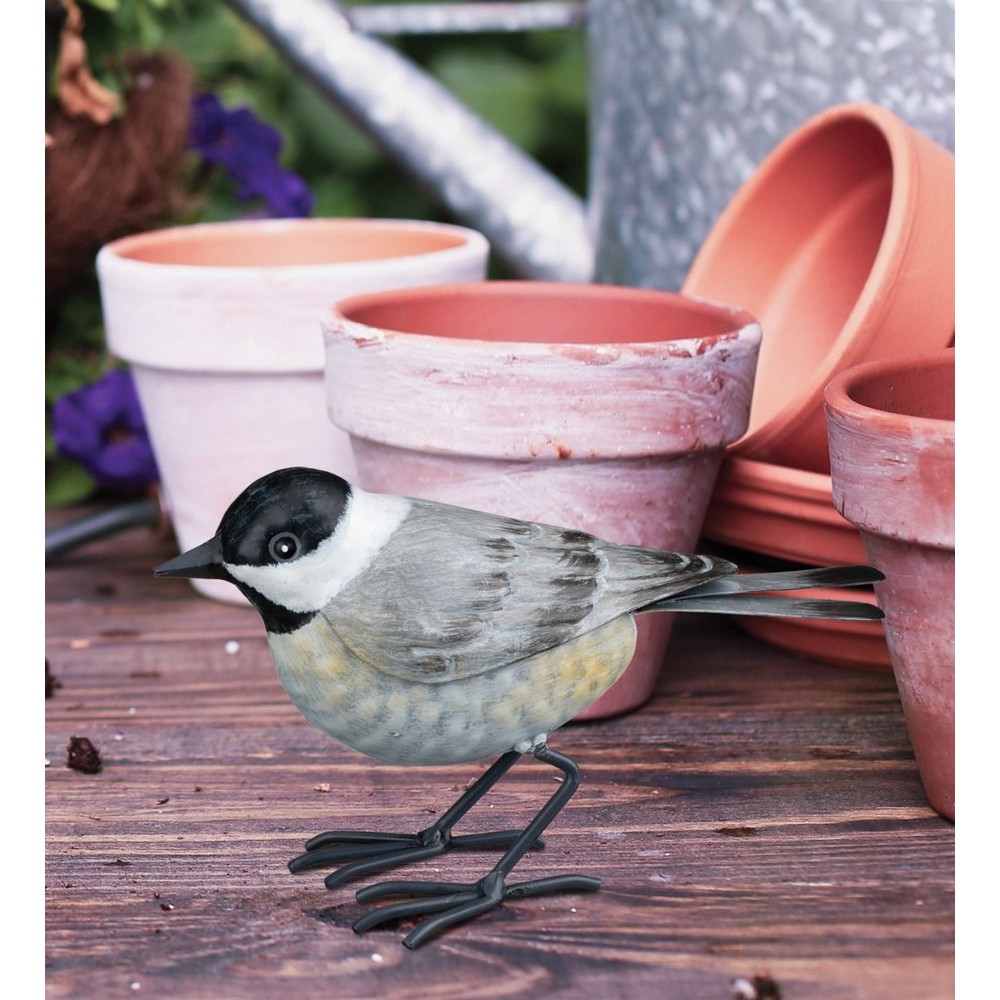 DescriptionReviews Description Life size, all metal Chickadee replica with hand-painted realistic details. Each piece comes with a rubber band to attach the bird to a tree limb. Reviews Be the first to review this item There are no reviews yet Product tags Clingers 322
