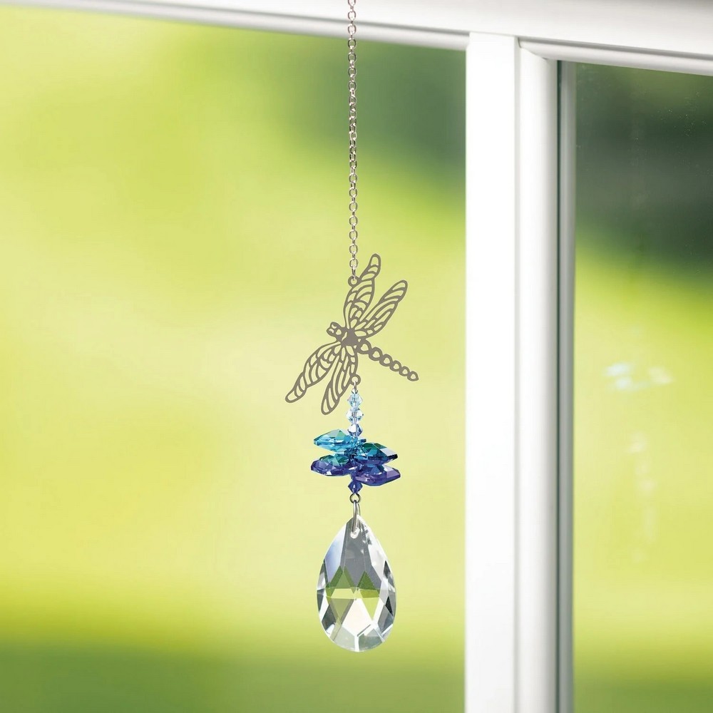 DescriptionReviews Description A large crystal drop is topped by smaller crystals and a silver dragonfly. Sun streaming through the crystals fills your room with rainbows. Cannot sell into Canada per manufacturer. Reviews Be the first to review this item There are no reviews yet Product tags Dragonfly 97