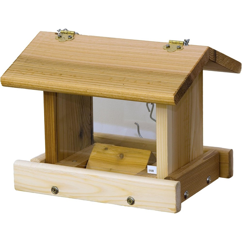 Comes with a chain for hanging. 9in w x 9in h x 11.5in l. Stovall products feature all cedar construction, stainless steel and dichromate plated screws, washers, hooks and chains, hand sanded, assembled with screws, many products coated with wood protector which accents the wood grain and the natural warmth of cedar.