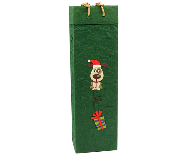 Nothing says Seasons greetings like Bella Vita's Fido bearing a gift of love! Bella Vita's adorable eco friendly wine bottle bag is hand crafted from handmade paper. This eco friendly and sustainable gift bag is adorned with a dog sporting a Santa hat, bearing a gift. No one can resist man's best friend... especially when you know there is wine inside! It's also sustainable and reusable so it's the gift that keeps on giving.