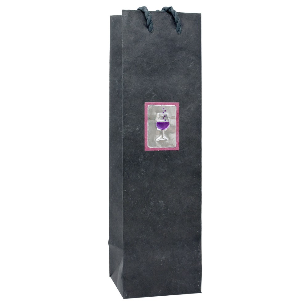 Reusable, sustainable, eco friendly, and DAZZLING! We think this deco wine bottle bag sells itself. This chic Black handmade paper wine tote has a metal embossed design that makes for a truly unique wine gifting experience. Look no further, we have just made gift giving easy!