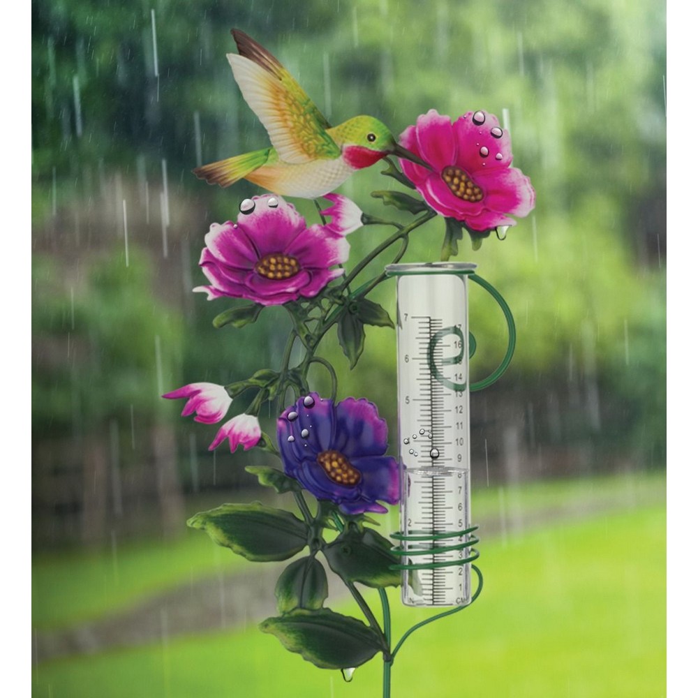 DescriptionReviews Description A delightfully painted hummingbird and flowers help you measure the rainfall in their large glass rain gauges, marked clearly with both inches and centimeters. You'll look forward to rainy days just to visit them. Reviews Be the first to review this item There are no reviews yet Product tags Hummingbird 1214