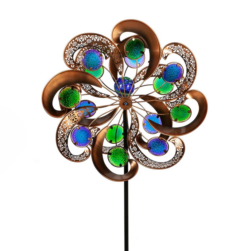 The Apostrophe-Prism Glass Dual-Motion Wind Wheel is a beautiful kinetic metal and glass garden art designed to spin counter-motion on a windy day. Comes with easy to assemble 30" stake. The Illuminarie 2.5” Glass globe is adorned with glow crystals on the interior surface creating a "Glow in the Dark" beauty to light up your garden. This is known as passive-solar and is a zero-waste process as there are no batteries to replace.