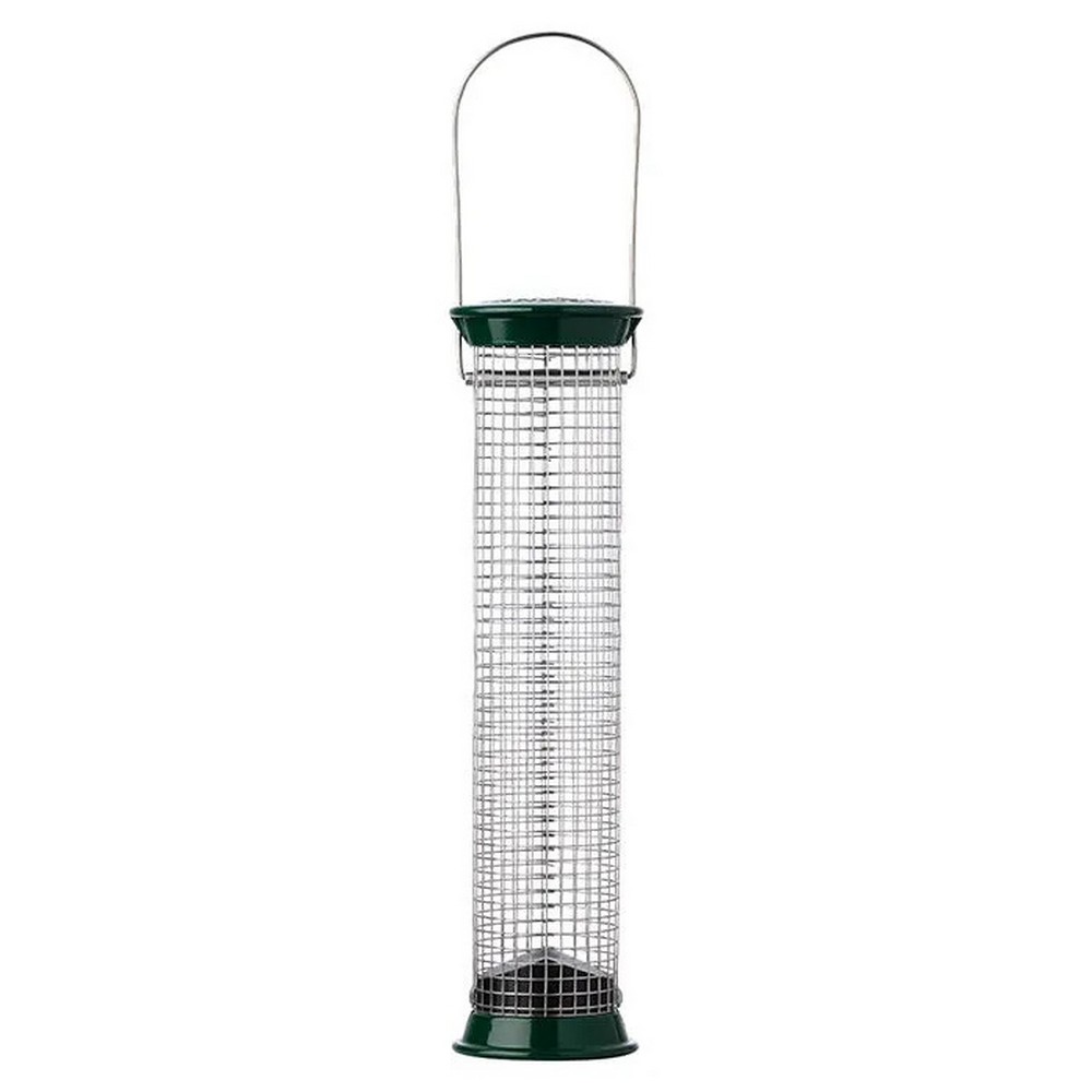 New Gen-Metal 13 in., Green Peanut. Zinc die cast tops, bases and ports- to last a lifetime Stainless steel wire- squirrels can't chew Snug fitting sliding cap- easy for you to lift but hard for squirrels Top assembly- easily removed for cleaning Contoured base- keeps seed within reach.