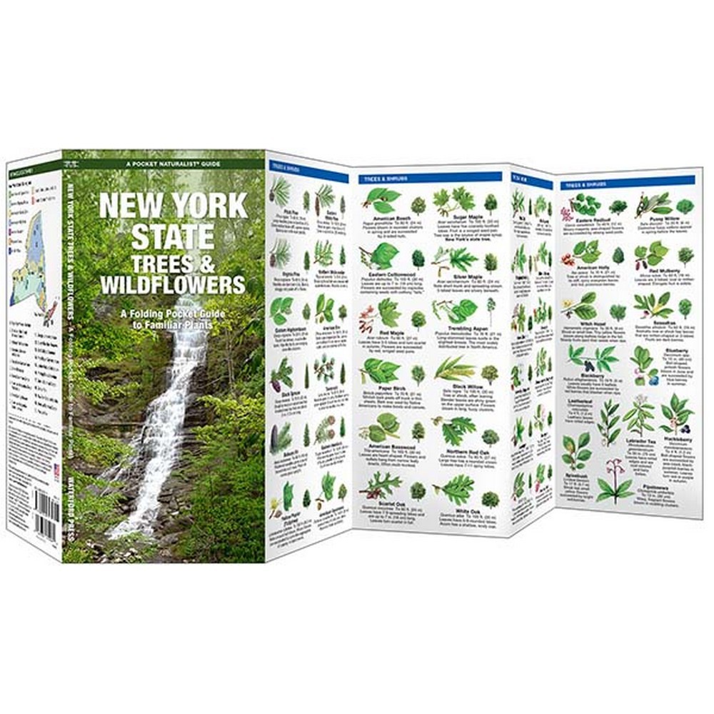The state flower, the rose, is one of thousands of species of plants growing in the diverse ecosystems found throughout the Empire State. This beautifully illustrated guide highlights over 140 familiar and unique species of trees, shrubs and wildflowers and also includes an ecoregion map featuring prominent botanical sanctuaries. Laminated for durability, this lightweight, pocket-sized folding guide is an excellent source of portable information and ideal for field use by visitors and residents alike. Made in the USA.