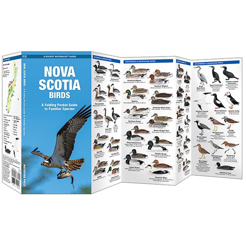 The peninsula and offshore islands that make up Nova Scotia – one of Canada's easternmost provinces – are home to more than 400 species of resident or migratory birds. With three distinctive coastlines with different characteristics, birding is excellent year-round. Spring and summer bring vireos, thrushes and warblers while fall visitors will see raptors in migration, huge flocks of seabirds as well as Auks, Loons and other seabirds. This portable folding guide includes illustrations and descriptions of 140 species and a back-panel map featuring the top bird viewing hotspots. A handy field reference for birders building their life-lists and the perfect take-along guide for visitors and nature enthusiasts of all ages.