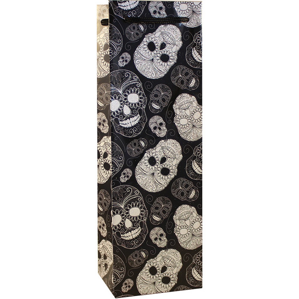 Our wicked Sugar Skull Skeleton wine bottle bag is the ultimate spooky gift giving accessory! This bag features festive glitter accents, and makes impeccable gift packaging for a Halloween party or Dia De los Muertos celebration. Party now and sleep when you're dead!