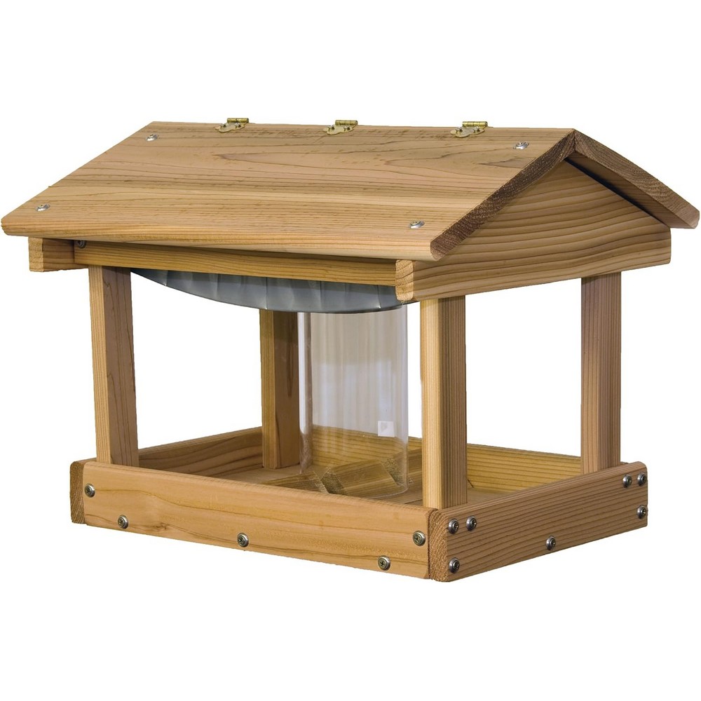 DescriptionReviews Description Galvanized steel seed hopper with plastic cylinder off the center piece of a feeding area and is a nice fly through feeder. 14 lb. capacity. Reviews Be the first to review this item There are no reviews yet Product tags Made in USA 5930