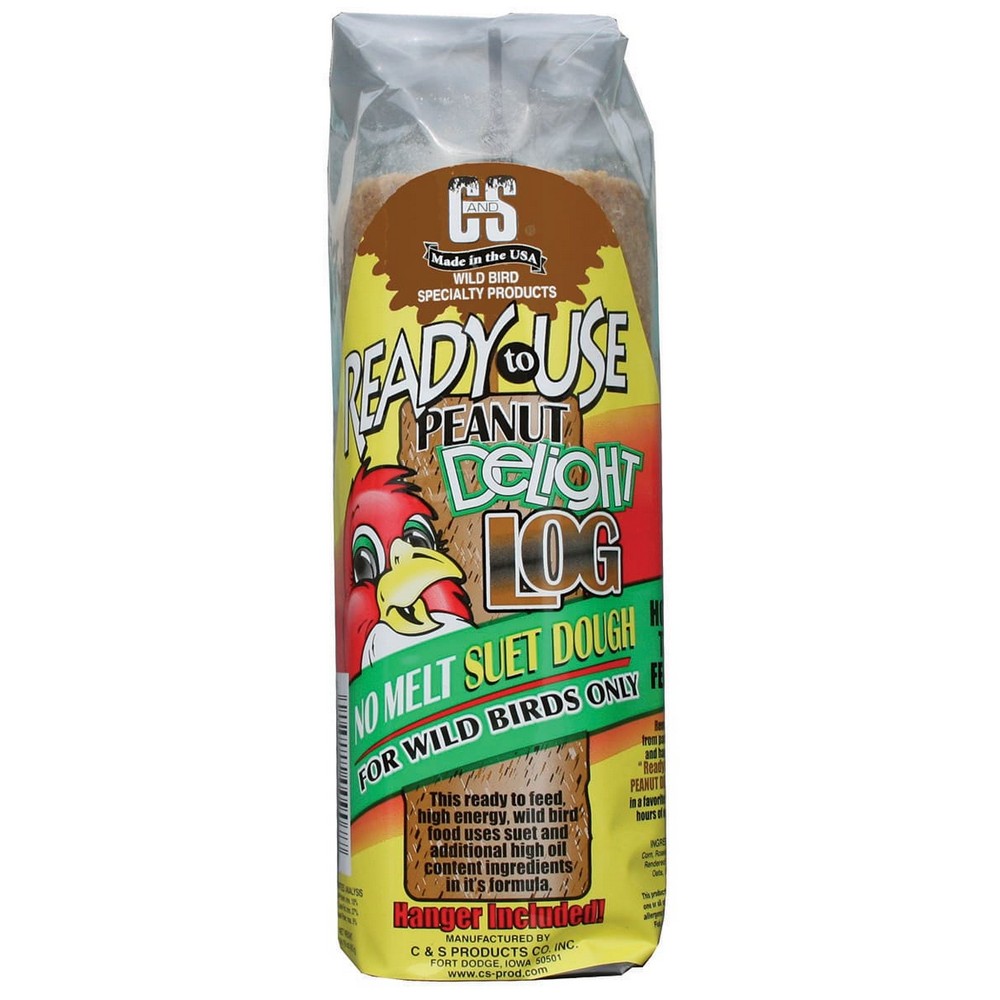 Ready-To-Use Peanut Delight Log 16 oz. Our Ready-to-Use Peanut Delight Log makes bird feeding as easy as opening the package and hanging it. We took our most popular flavor of No Melt Suet Dough, compressed it into a log, and mounted it to an easy-to-hang, self-contained feeding pole. A great impulse item and gift idea for the beginning or experienced bird feeding enthusiast. Ingredients: Corn, Roasted Peanuts, Rendered Beef Suet, Oats, Soy Oil. (must order in 8's)