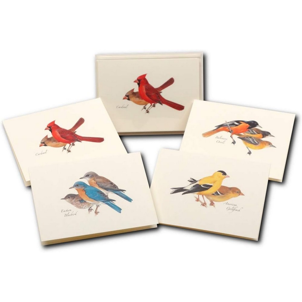 DescriptionReviews Description This beautiful Assortment includes 8- 3.5 X 5 inch notecards with detailed color illustrations, 2 each of 4 different styles, each blank inside, printed on quality recycled paper, plus envelopes, all packaged in a mylar gift box. Reviews Be the first to review this item There are no reviews yet Skip list Product tags Bluebird 549 Cardinals 782 Goldfinch 390 Made in USA 5930 Oriole 228 Paper 507