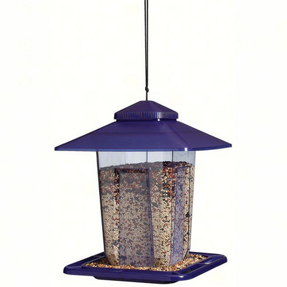 Prairie Style Basics Bird Feeder. Contemporary, square style featuring large roof overhang and extra large seed capacity. Has a lift top lid for easy filling. Hanging Cord included, or pole mount on 3/4 in pole (not included). Holds approximately 5 lbs. of seed. Assorted colors, blue and green.