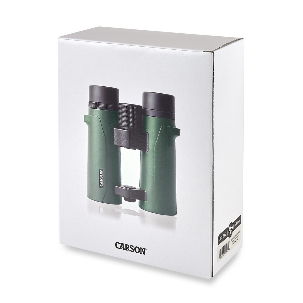 The CARSONRD842 is a full size binocular with a contemporary open bridge design. These binoculars boast high quality BAK-4 prisms and fully multi-coated optics to ensure a crisp, bright image. A durable, waterproof design ensures a clear view. Its open bridge design makes it an ideal companion for concerts, sporting evens, hiking and any outdoor activity, Store in its hard protective case when not in use.