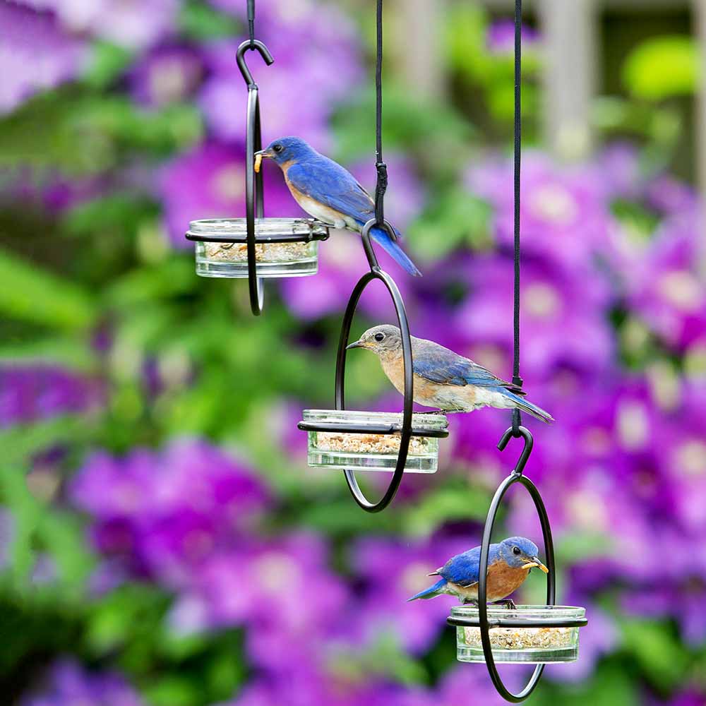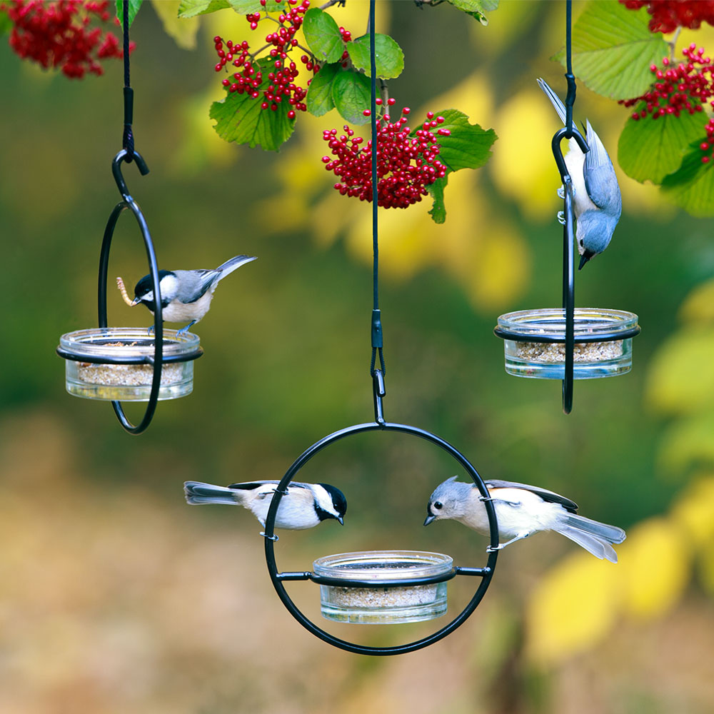 Made of Recycled Glass and metal, this feeder without drainage is perfect as a mealworm feeder, jelly or suet pellet container. It will attract many song birds such as Blue Birds, Orioles, Juncos, and many more depending on your location and season. Use a single feeder or link them to each other to feed a larger crowd! Gift box included.