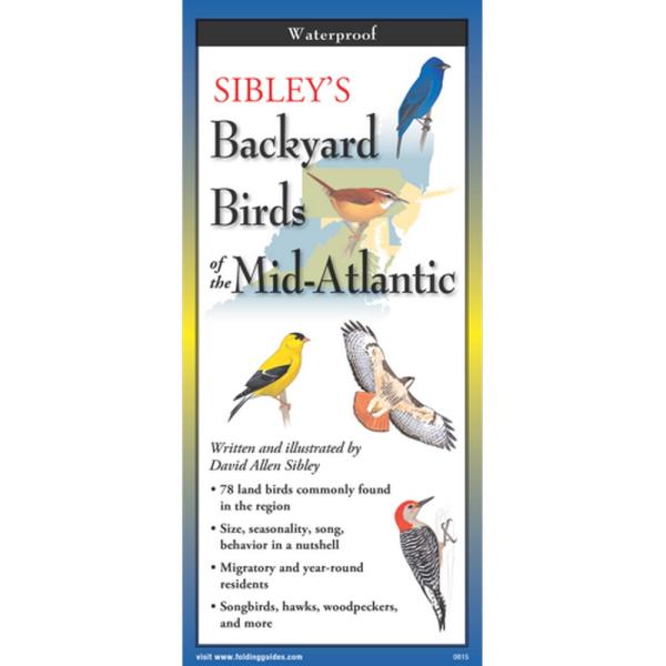Written and illustrated by David Allen Sibley, America's most widely respected bird illustrator and ornithologist, these Folding Guides offer instant access to just what backyard birdwatchers need to know. 78 land bird species are covered, including multiple illustrations, descriptive captions, size, range, and seasonal presence. The Mid-Atlantic region includes southern New York (incl. Long Island), Pennsylvania, New Jersey, W. Virginia, Ohio, Indiana, Kentucky, Tennessee, and Virginia.