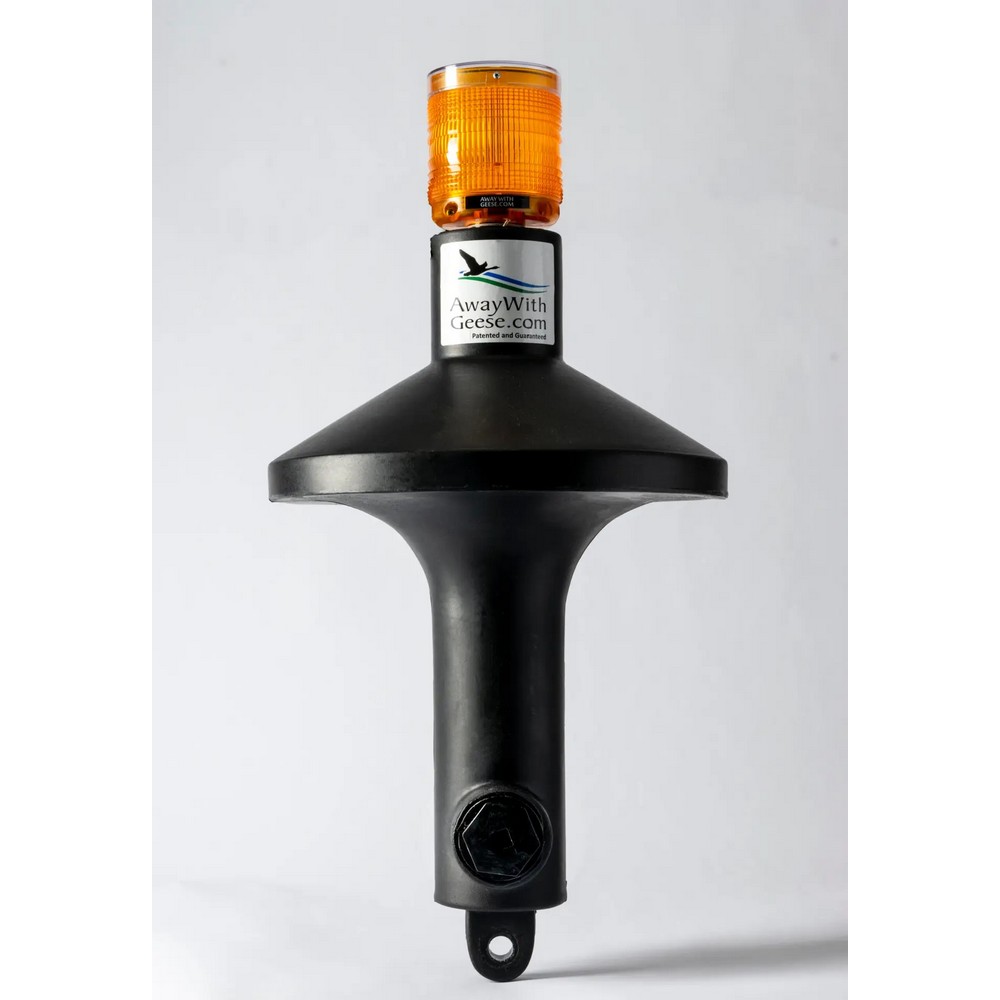 Water based unit disrupts geese sleep patterns causing them to move to another pond. The product floats in the water and works at night, 7 days a week. Solar powered no changing batteries or running electricity to the site. Maintenance free. Environmentally safe and effective geese control. Barely noticeable to the human eye. Solves Geese problems quickly! Item has an integrated securing point. Unit uses lithium battery which is integrated onto the board and then coated in a plastic. This is done because of the product being outside constantly. The whole light is replaced when the old light stops working.
