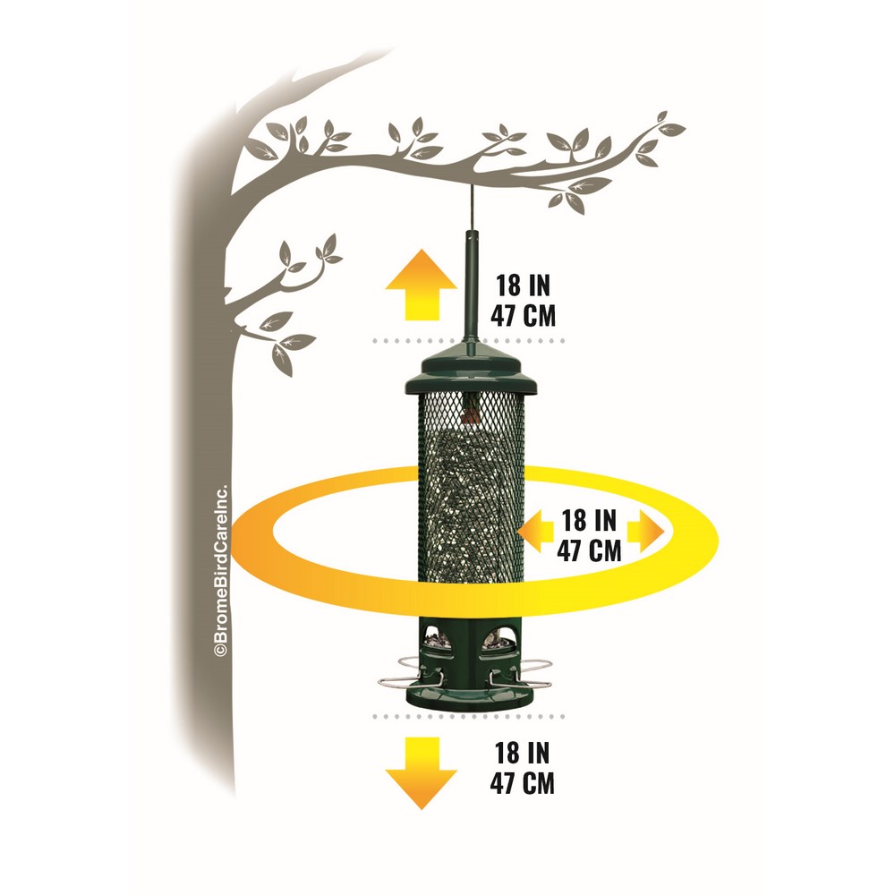 The Squirrel Buster Legacy delivers all the features proven to maximize your wild bird feeding experience. Award winning, patented Squirrel Buster technology is truly squirrel proof. Weight adjustable closing mechanism shuts out squirrels as well as some heavier undesirable birds. Both perching and clinging footholds increase bird activity. Chew-proof components stop annoying squirrel damage. Features a patented seed ventilation system that keeps seed fresher. Detachable Component System for easy cleaning, filling and servicing. Tough polycarbonate tube. Stainless steel perches and hanger. UV stabilized components. Comes with Lifetime Care.