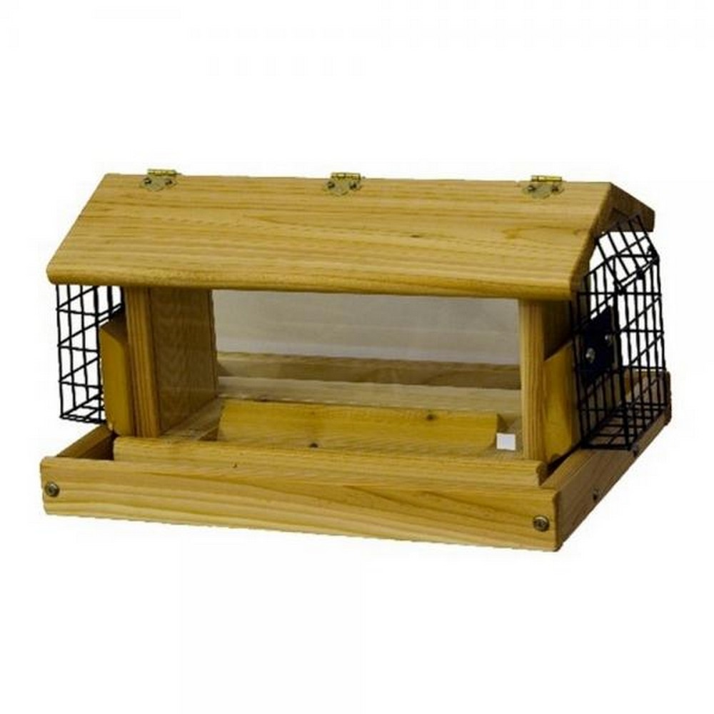 DescriptionReviews Description Large mixed seed post mount feeder, with suet baskets on each side of the feeder. Seed capacity of 8-10 lbs. Reviews Be the first to review this item There are no reviews yet Product tags Made in USA 5930
