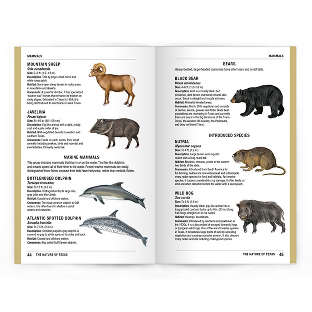 The largest state in the continental US, Texas hosts more than 1000 species of plants and animals. The Nature of Texas includes a memorable essay by James C. Rettie, who worked for the National Forest Service in 1948. In a flash of brilliance, he converted the statistics from an existing government pamphlet on soil erosion into an analogy for the ages. His essay inspires us all to recognize the fleeting time and fragile state of the natural world around us. This field guide introduces readers to common plants and animals and highlights the diversity of species found in Texas with more than 350 full color illustrations, 9 maps featuring the major wildlife viewing destinations and parks in different parts of the state. Checklists and full indices so that serious citizen scientists and nature watchers can track their viewing experiences.