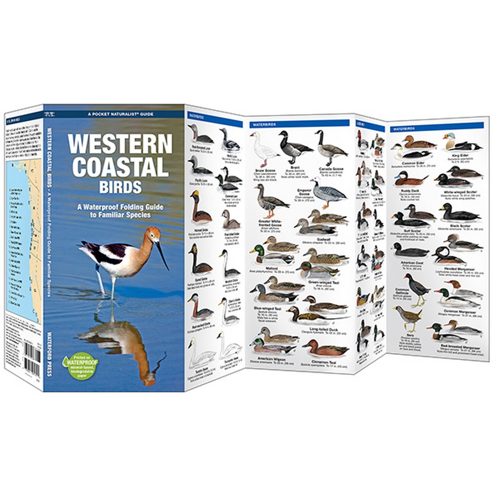 Western Coastal Birds is a pocket-sized, folding reference guide highlighting the most commonly seen birds along the coast of western North America. This beautifully illustrated guide covers over 140 familiar species and includes a map featuring prominent coastal birding hotspots. Printed on waterproof paper for durability, this lightweight guide is a great source of portable information and ideal for field use by novices and experts alike. Made in the USA.