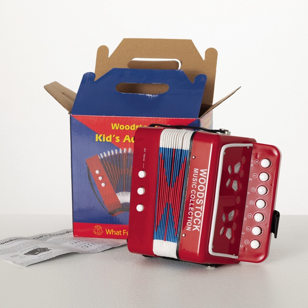 The accordion is one of the world's most popular instruments, and kids everywhere just love them. Our accordion has true authentic sound and a 2-octave range. Key of C. Comes in a 4-color gift box with detailed playing instructions and eight easy-to-play songs. Intended for ages 3 and up.